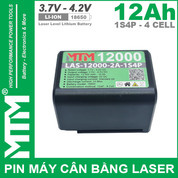 Pin máy cân bằng Laser bắn cốt 3.7V 12Ah MTM chính hãng cao cấp. Cell pin mới đúng dung lượng có mạch bảo vệ thông minh chất lượng cao, phù hợp cho các loại máy cân bằng bắn cốt chân pin phù hợp.